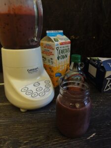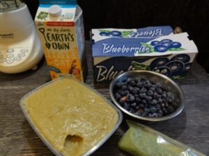 今回は、ルバームジャムとブルーベリーとオーツ・ミルクとケール・パウダーとメイプルシロップを入れて作りました。ここに、バナナやリンゴを入れたりして、味を変えれば、何十種類のメニューが出来ます。ケールは栄養価が高いので、健康食品としても使われています。波動食品にケール・パウダーを付け加えると、波動コンテンツにもいろいろな幅で出てきます。