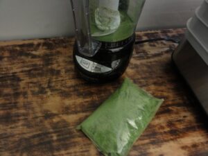 さらに、注目をしているのがケールです。栄養価が高く、簡単に育ち害虫被害も少ない作物です。収穫時期になると、大量の葉が出来るので生で販売するにも限界があります。その時に、加工食品として作物を作り替えてしまう方法です。今回、ケールパウダー(青汁粉)を作ってみました。これはいたって簡単で、乾燥器(Food Dehydrator)があれば誰でもできます。